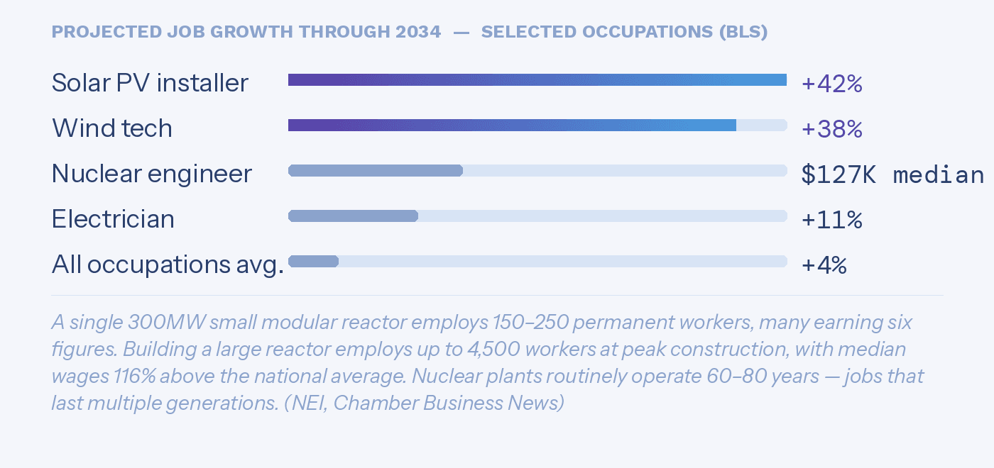At the exact moment when people are worried about AI taking their jobs, we're also pushing back against the investments that would create the next generation of high-skilled American jobs — in solar, in nuclear, in grid modernization, in advanced manufacturing, in all the physical infrastructure that the digital economy depends on.